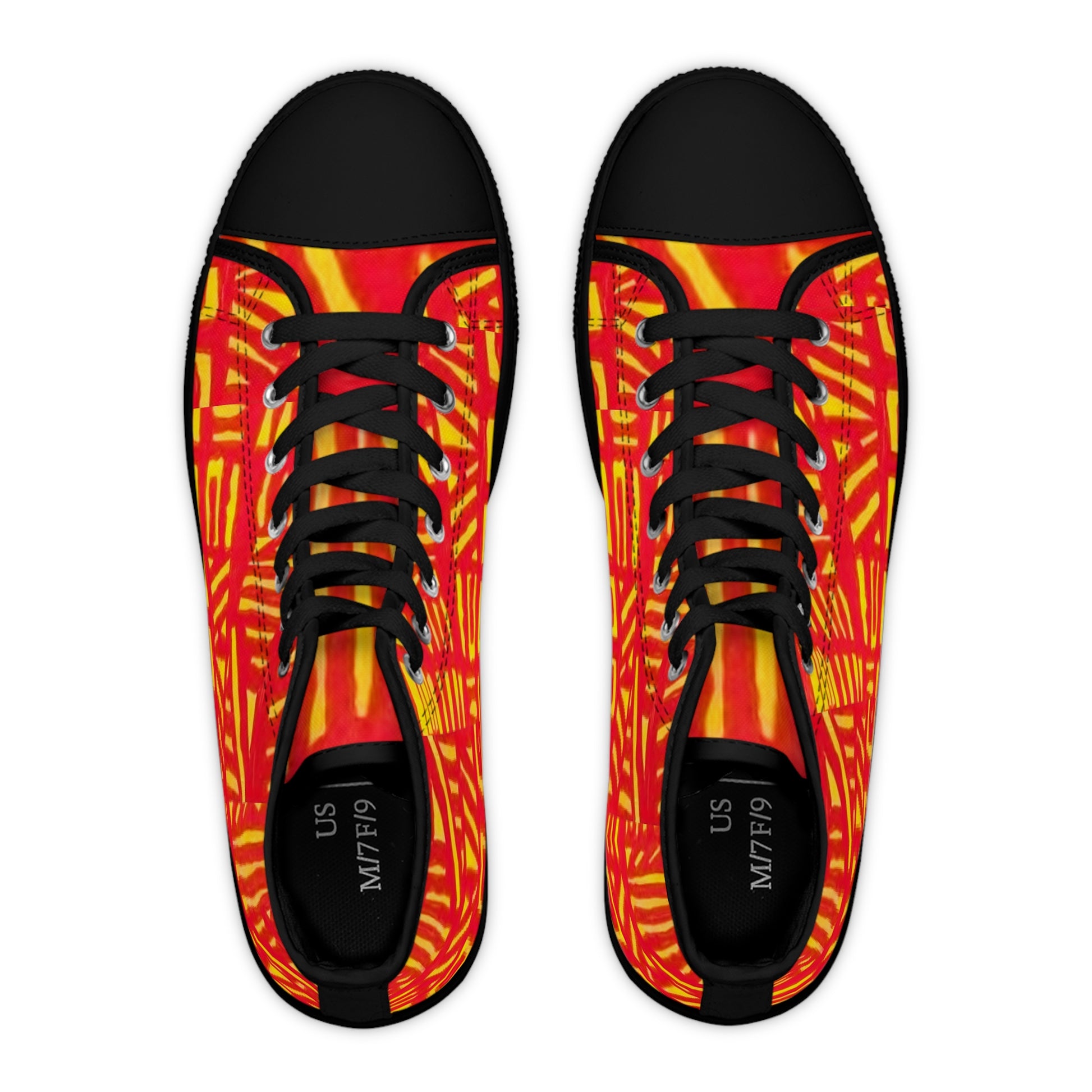 Abstract Red Yellow Tribal Pattern High Top Sneakers | Bold Graphic Shoes