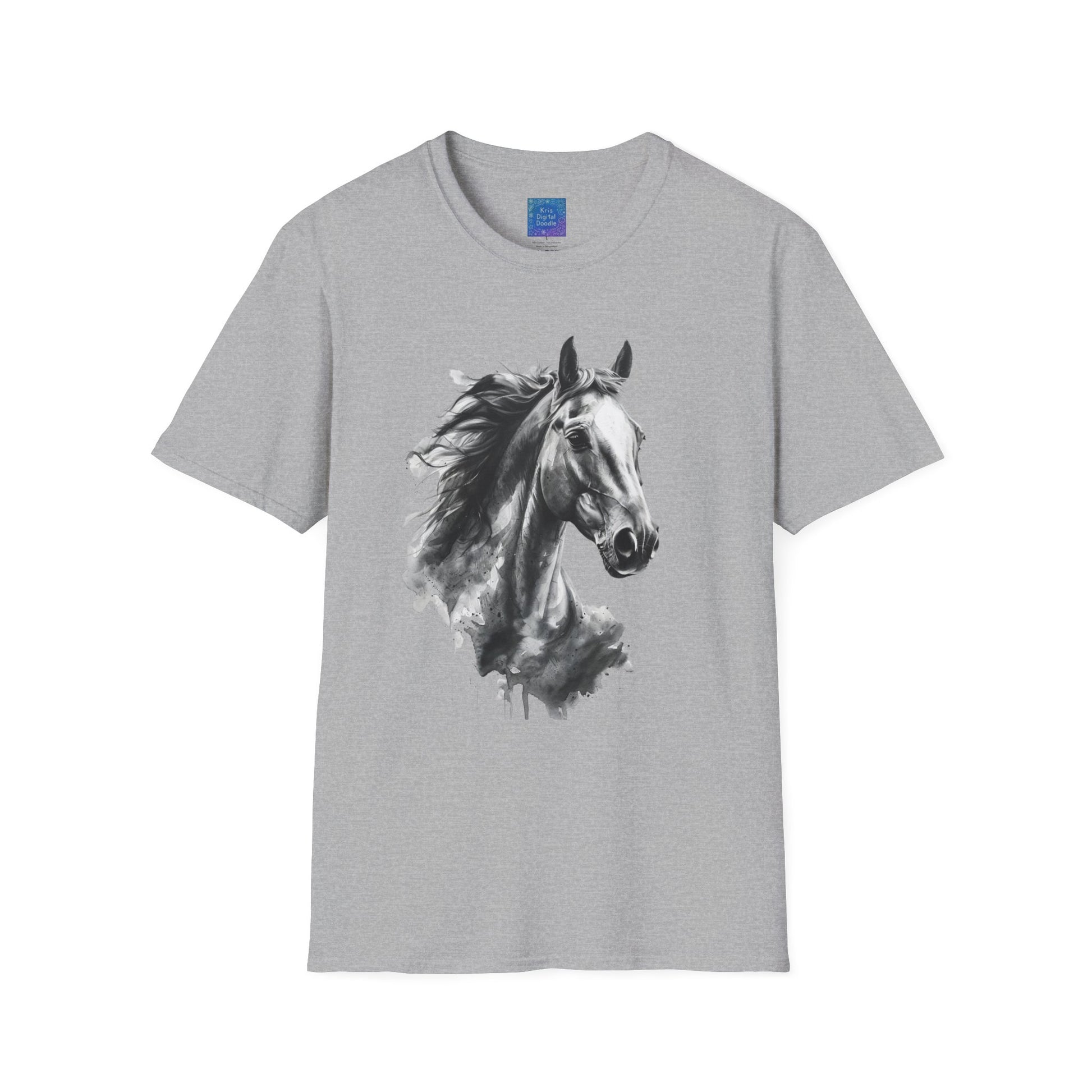 Black and White Horse Graphic T-Shirt Artistic Equestrian Tee