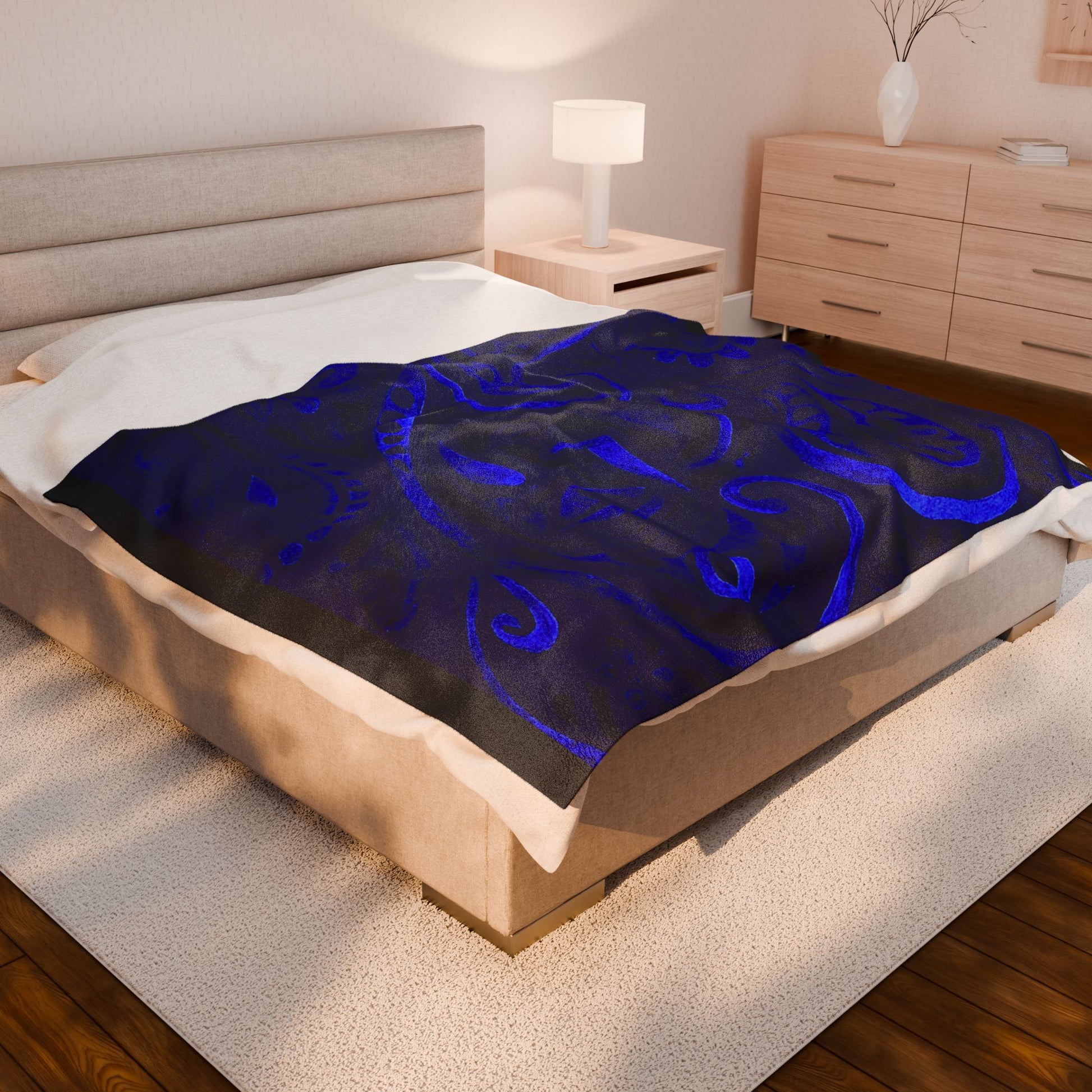 Sink into velvety night with this plush velveteen blanket. Deep indigo paisley swirls float across a rich, luminous background, turning any quiet evening into a cozy, contemplative moment. The medium-heavy fabric drapes smoothly over shoulders or laps, holding warmth without weight. Double-needle topstitching hugs every edge for long-lasting use, while the high-detail print on one side keeps the colors vivid wash after wash. Bring it to a late-night reading nook, curl up on the sofa for a streaming marathon, or tuck it at the foot of your bed to add a touch of moody, artisan flair.