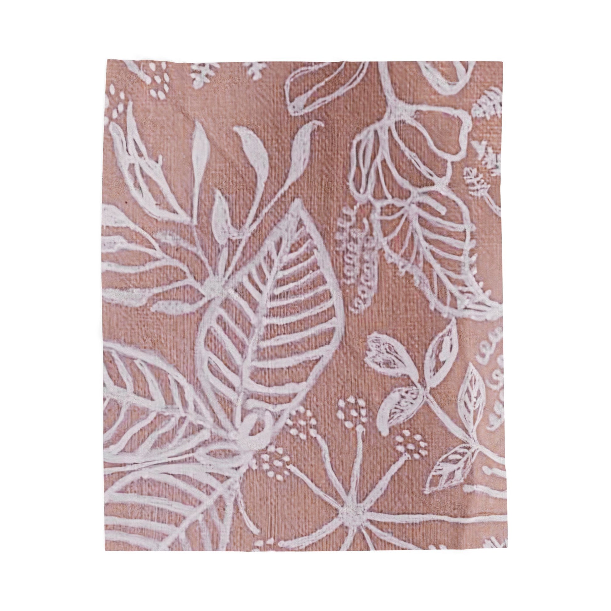 Blush Botanical Leaves Velveteen Plush Blanket | White Floral Outline