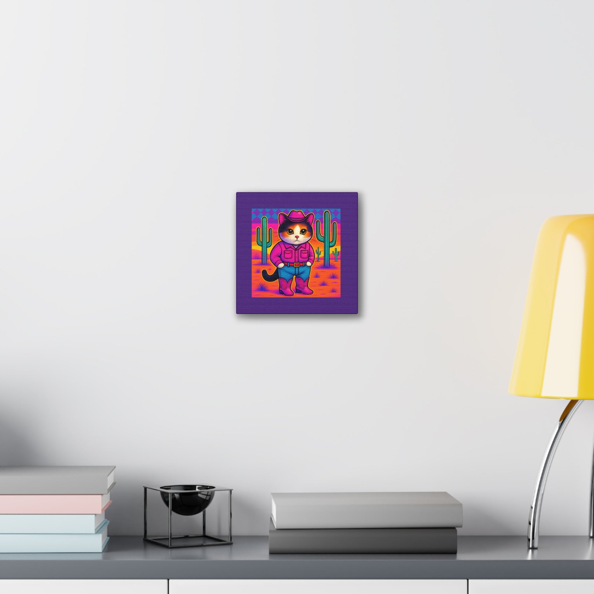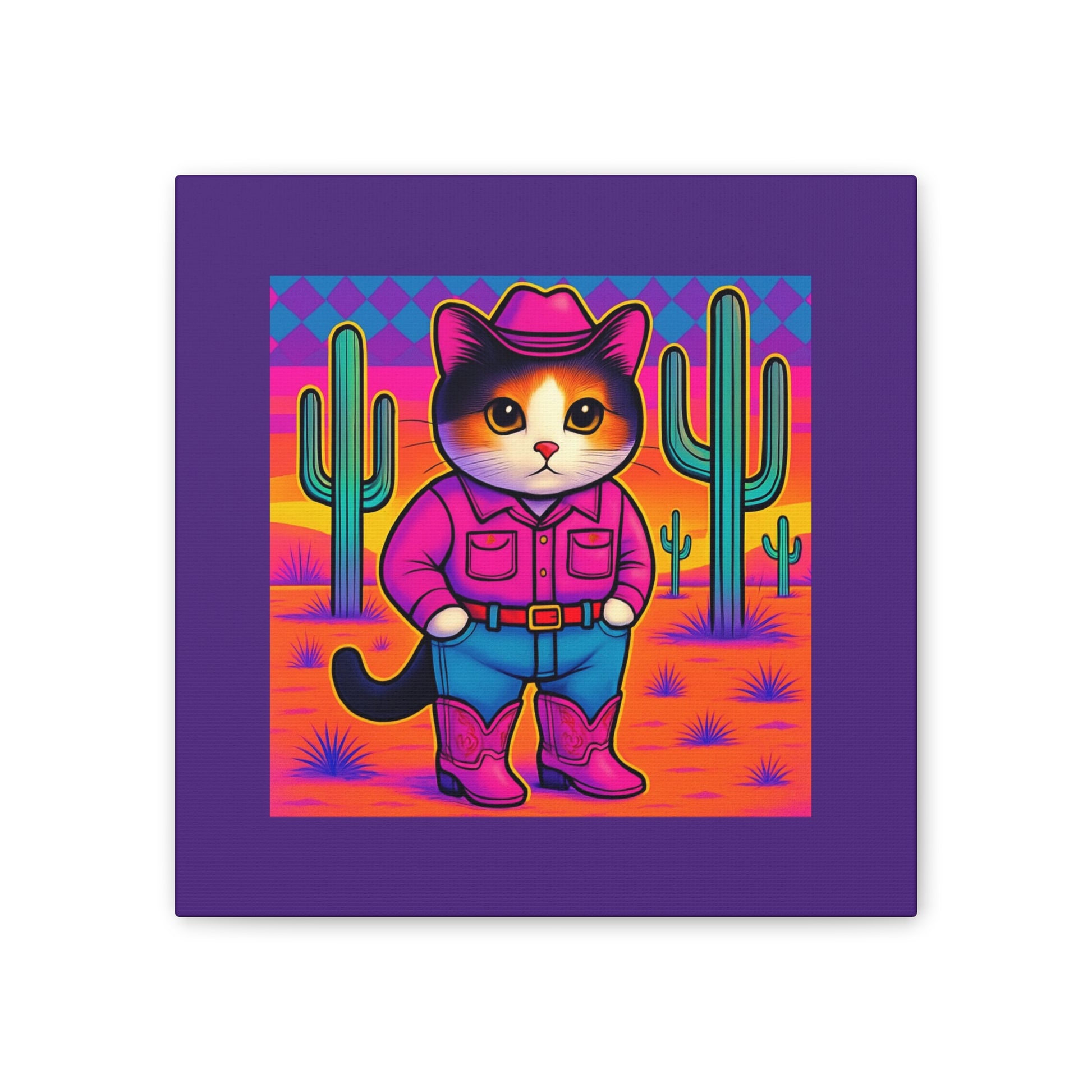 Bright Colored Cowboy Cat with Cactus Canvas stretched 8x8