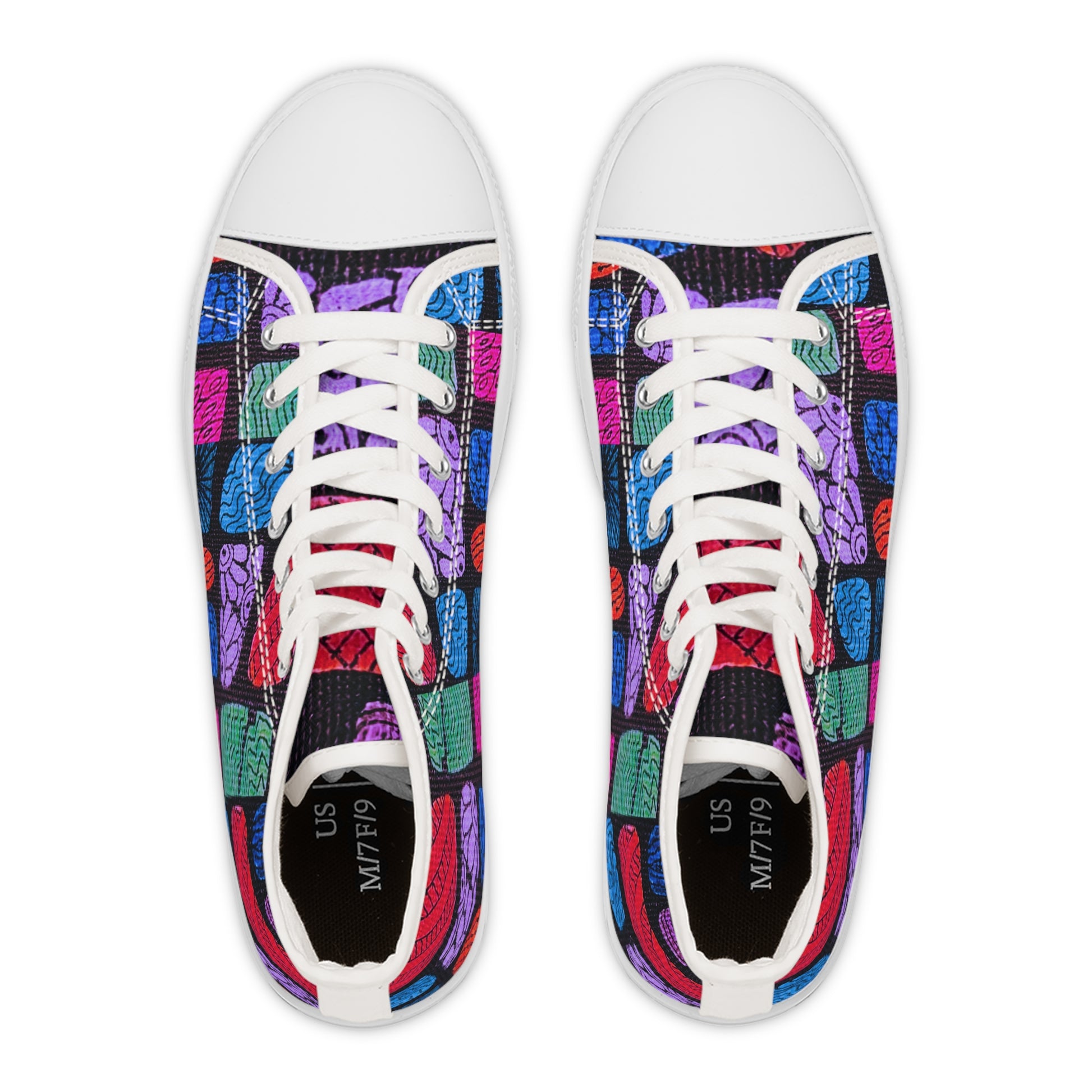 Colorful Brain Pattern High Top Sneakers | Womens High Tops, Psychedelic Grid Design