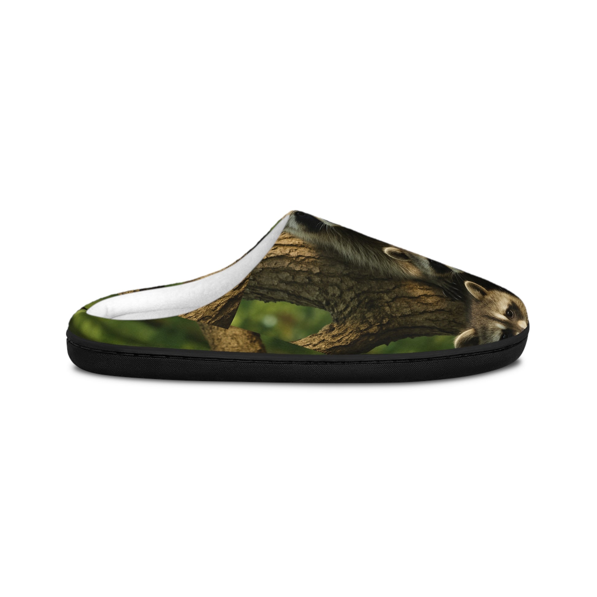 perfect for animal lovers who want soft, plush house shoes with adorable woodland style. These cute raccoon print slippers feature a snuggly faux-fur lining, cushioned footbed, and a detailed nature-inspired raccoon design that stands out while staying cozy. Ideal for fall, winter, gifts, cabin decor, wildlife lovers, and anyone who loves cute critter fashion. Great for lounging at home, dorms, cabins, and holiday gifting.
