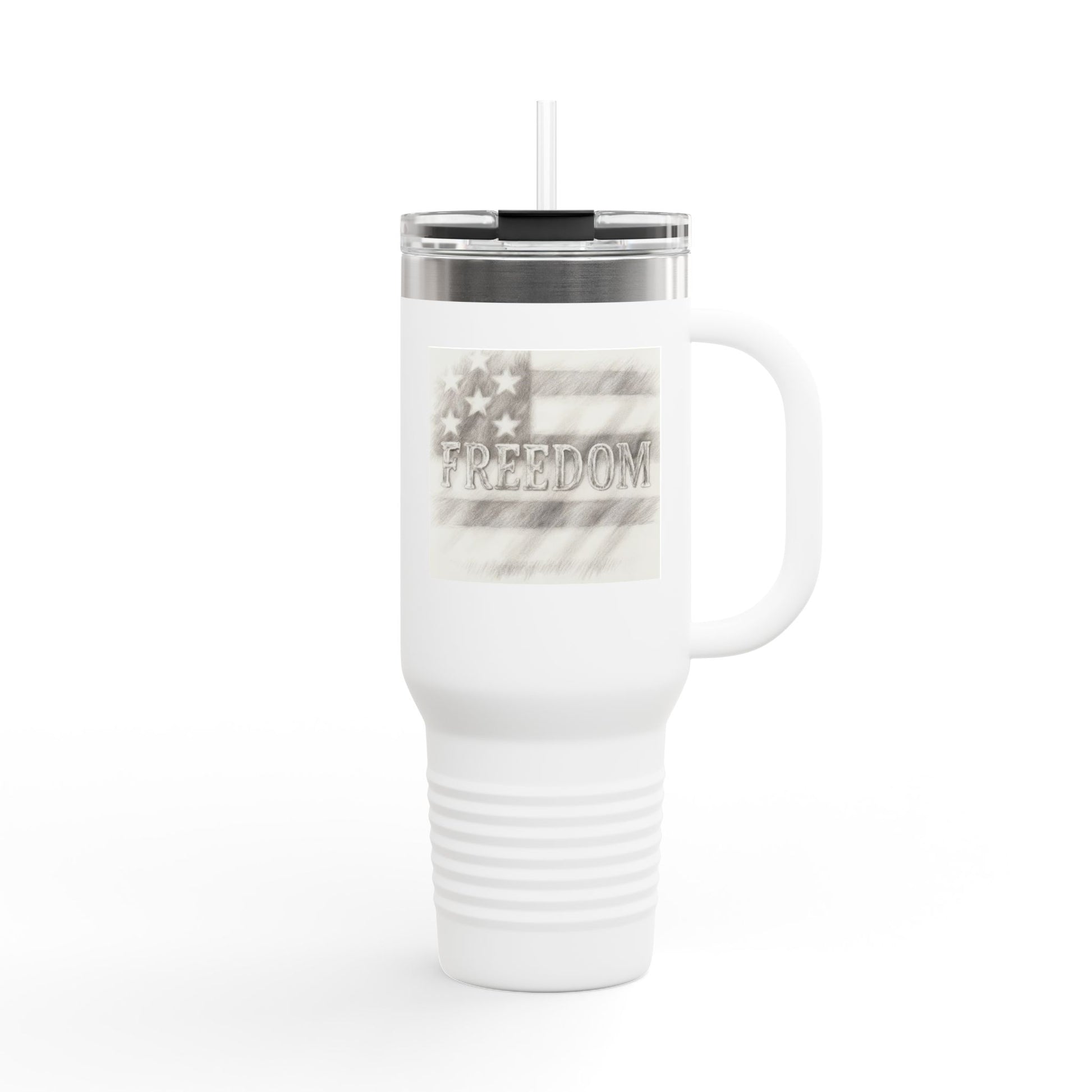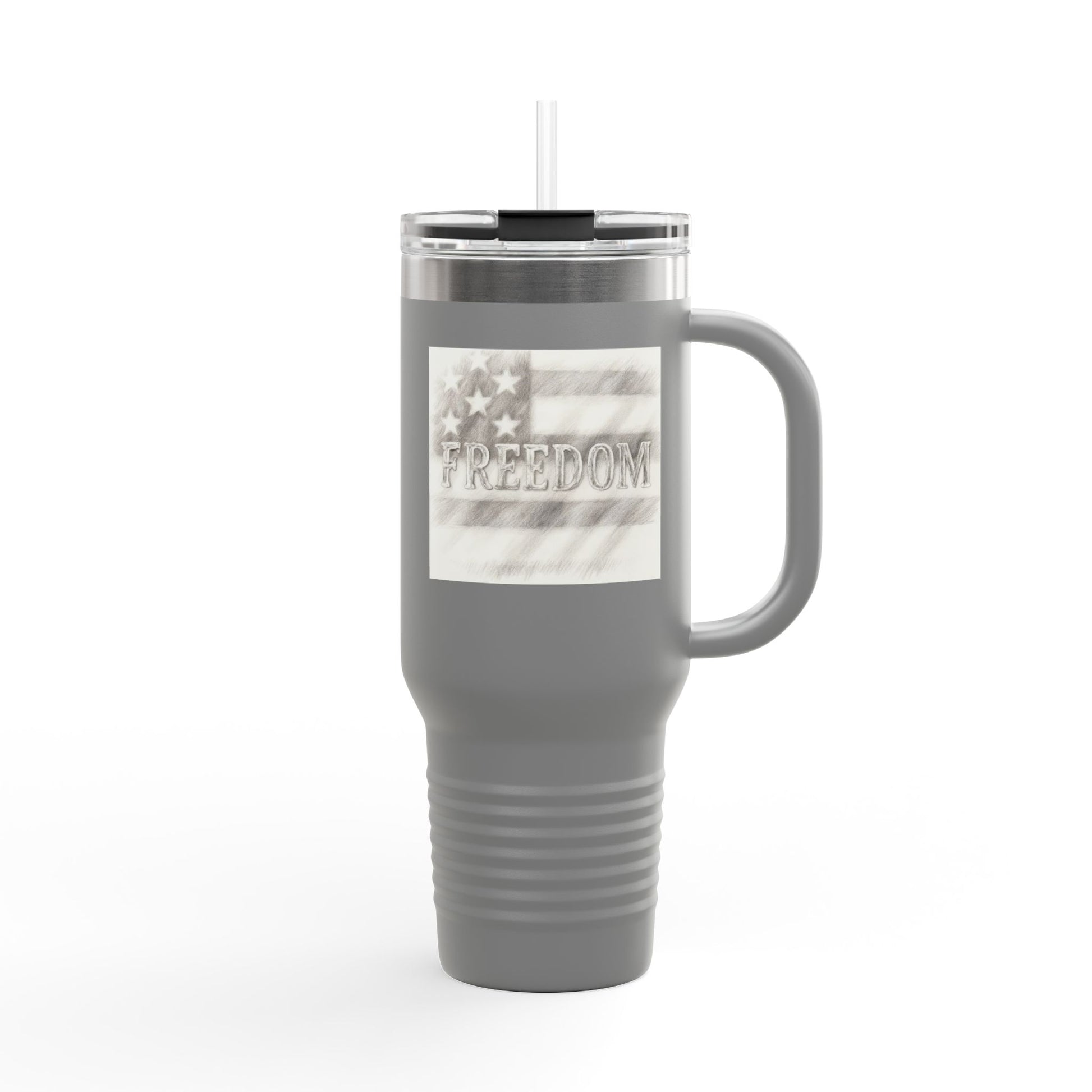 Freedom Flag Travel Mug Patriotic American Tumbler With Handle