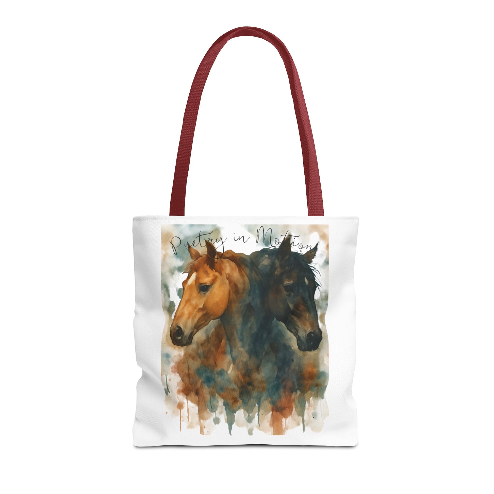 Horse Art Tote Bag, Watercolor Horses, Pretty in Motion