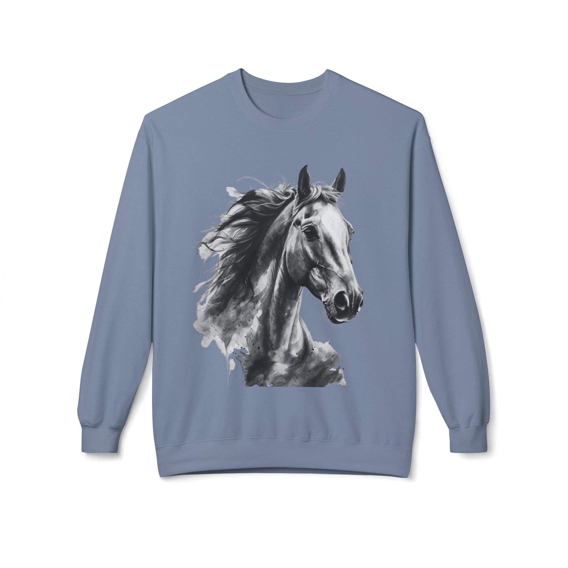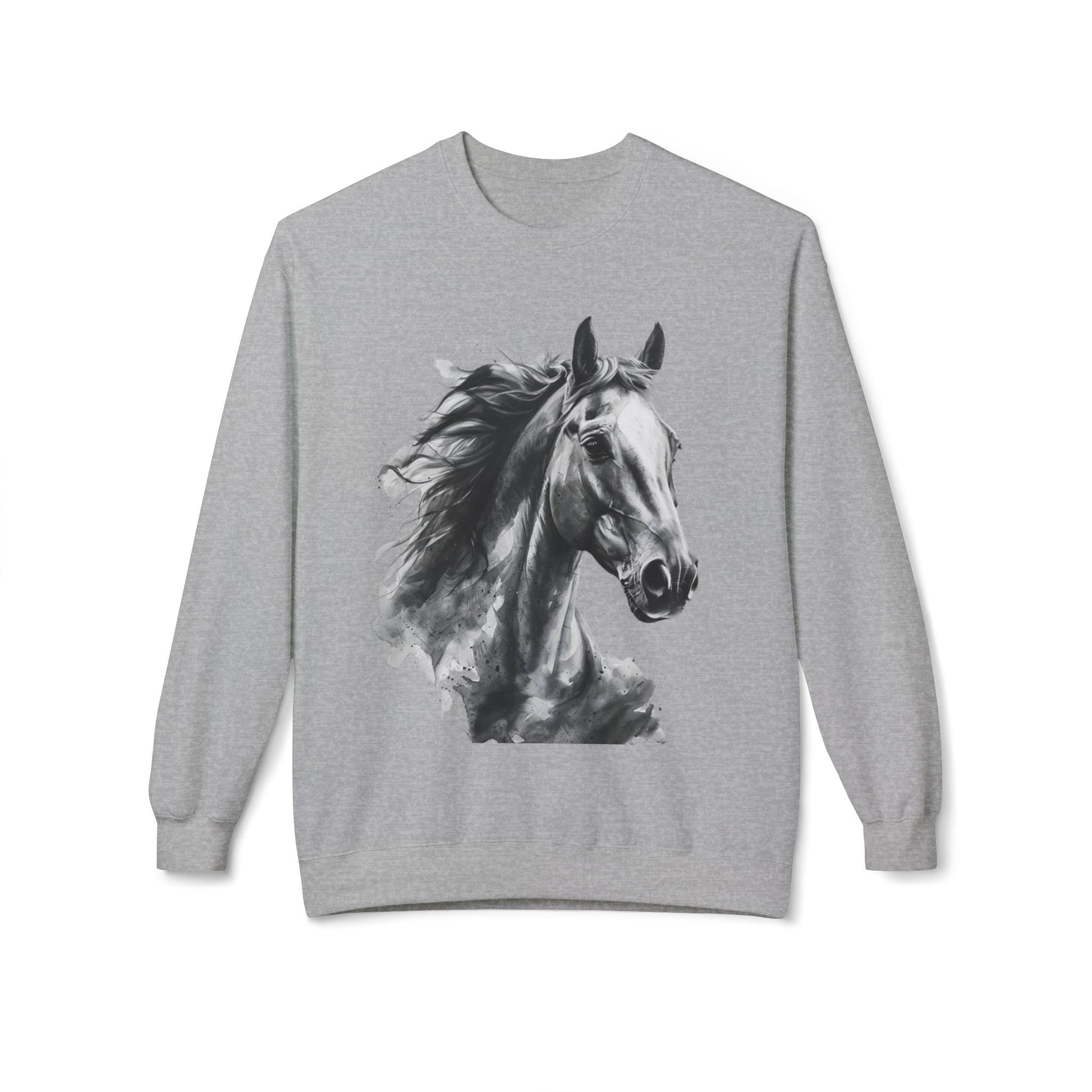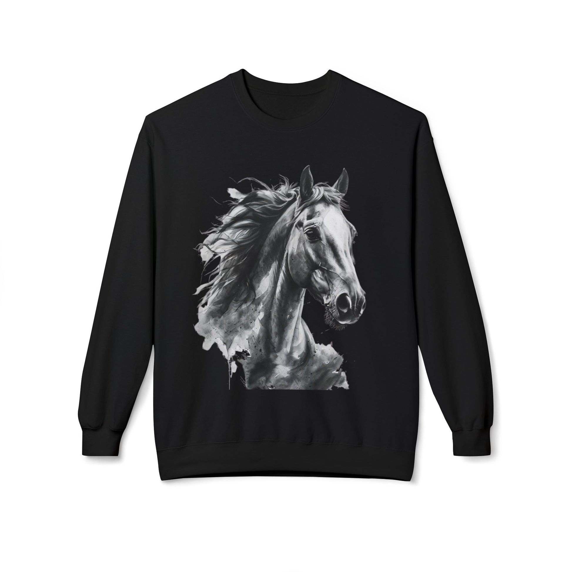 Horse lover sweatshirt with stunning black and white watercolor art that captures the strength and beauty of the horse. This cozy equestrian pullover is perfect for riders, horse owners, and country style fans who appreciate elegant simplicity. Made from soft, durable fabric for everyday comfort — ideal for chilly mornings at the barn, countryside walks, or relaxing days at home. A thoughtful gift for horse enthusiasts and anyone who loves artistic animal designs with rustic, timeless charm.