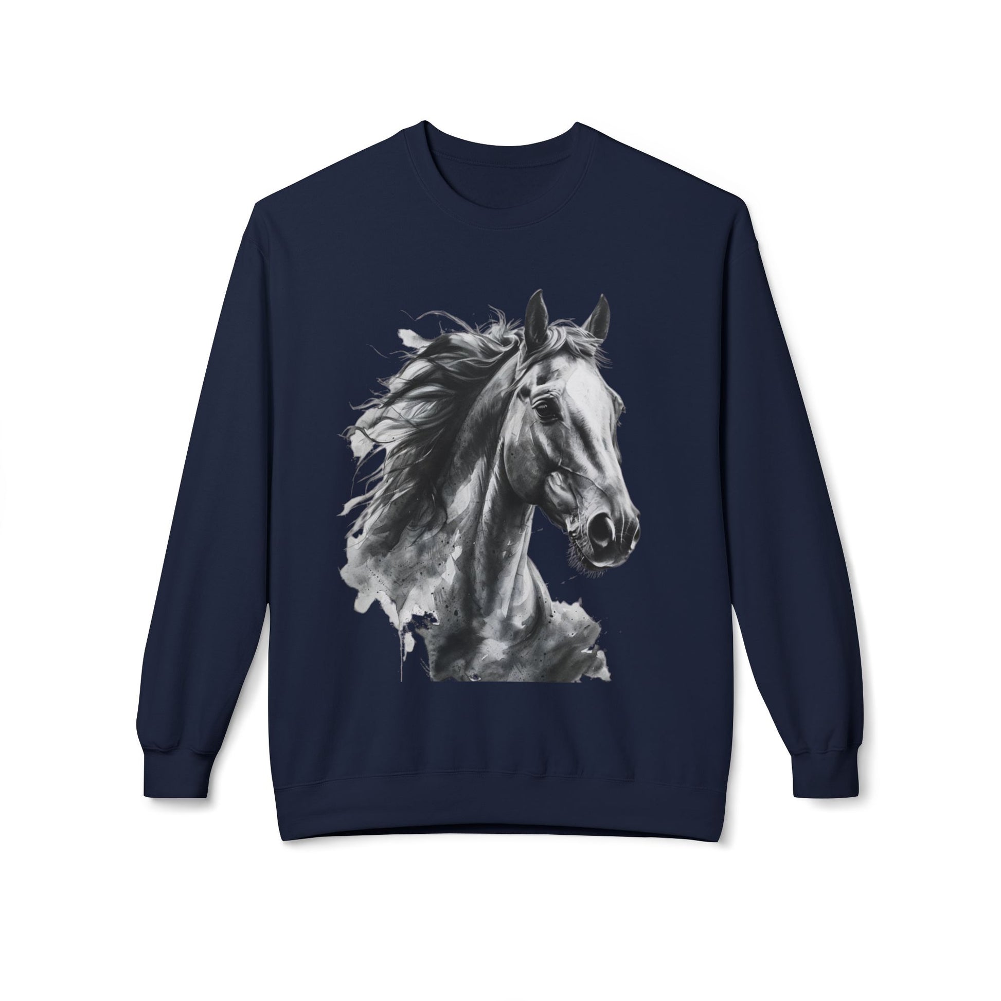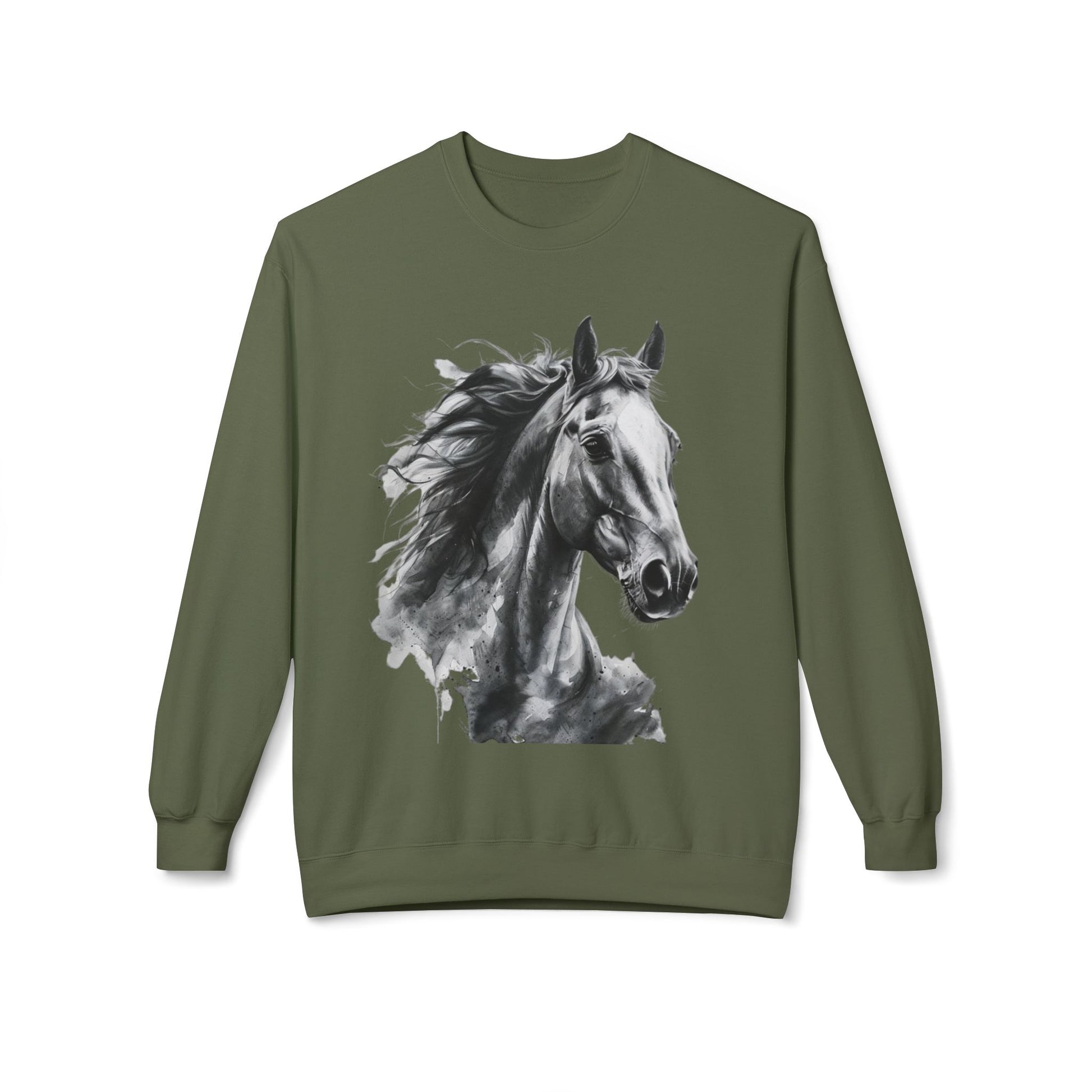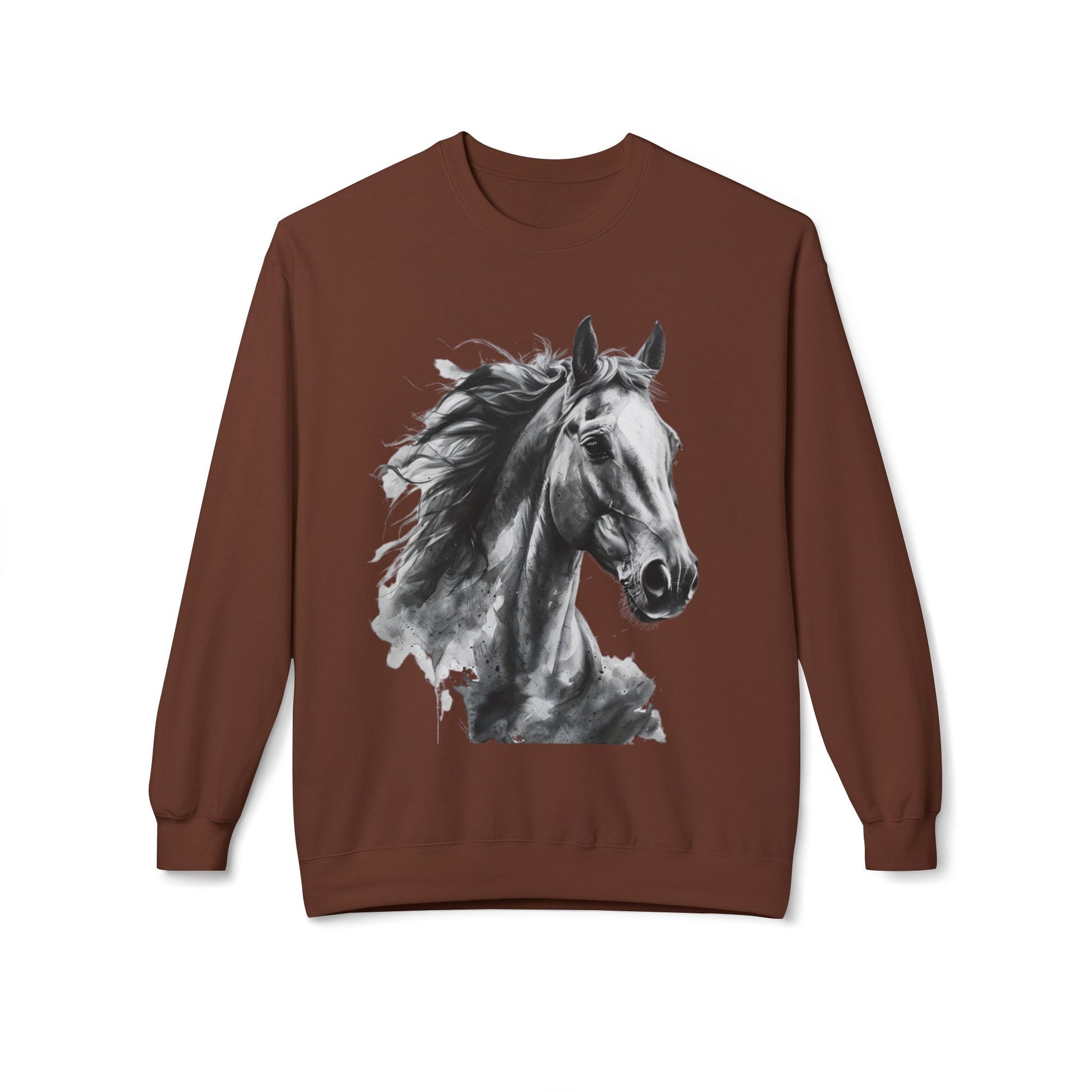 Horse lover sweatshirt with stunning black and white watercolor art that captures the strength and beauty of the horse. This cozy equestrian pullover is perfect for riders, horse owners, and country style fans who appreciate elegant simplicity. Made from soft, durable fabric for everyday comfort — ideal for chilly mornings at the barn, countryside walks, or relaxing days at home. A thoughtful gift for horse enthusiasts and anyone who loves artistic animal designs with rustic, timeless charm.
