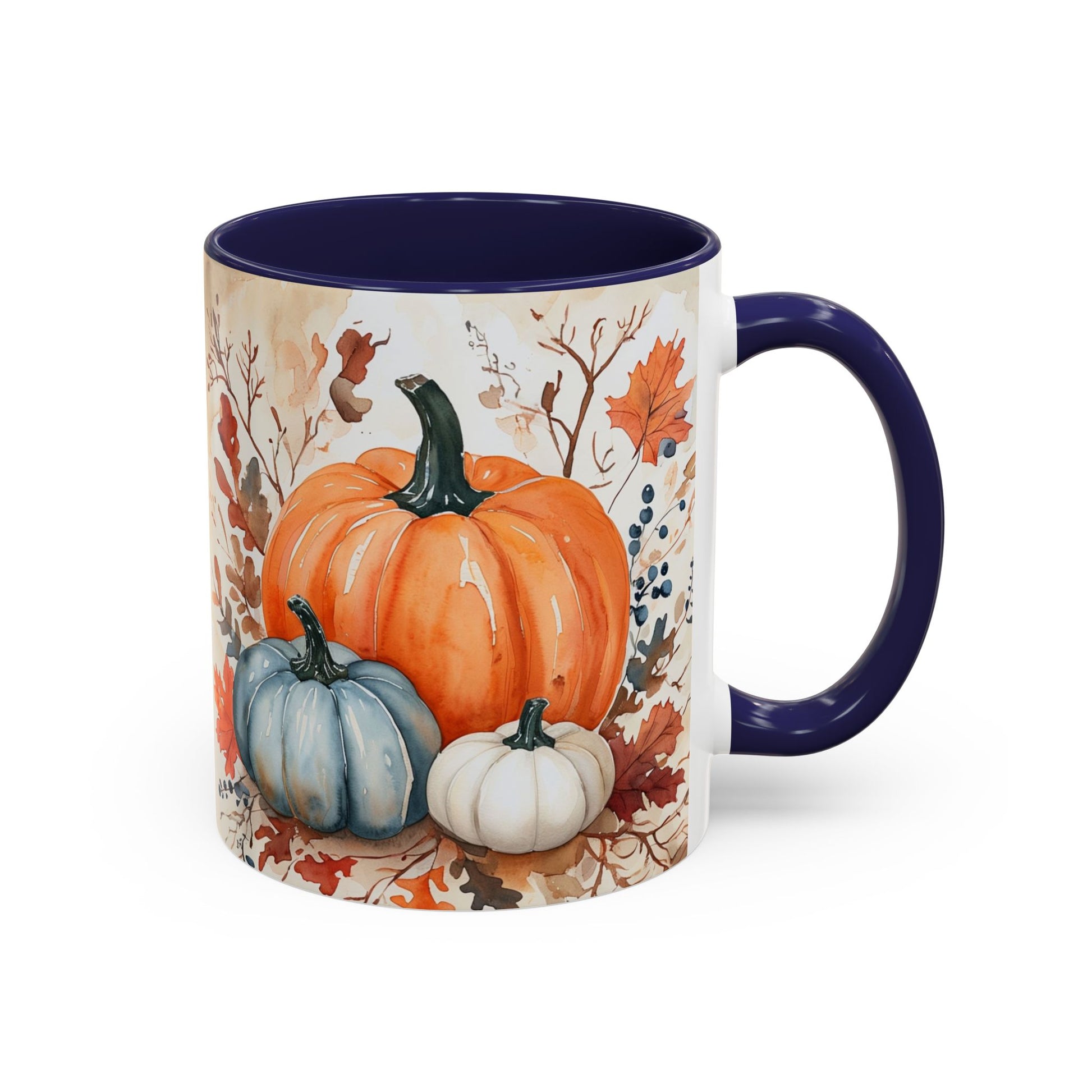 Pumpkin fall mug with vibrant autumn harvest pumpkins and rustic farmhouse charm. This cozy coffee cup features a festive pumpkin design perfect for fall drinks. Ideal for seasonal home décor, Thanksgiving gatherings, pumpkin spice lovers, and farmhouse kitchen accents. Durable ceramic mug with comfortable handle, perfect gift for autumn lovers, coffee enthusiasts, and holiday celebrations.
