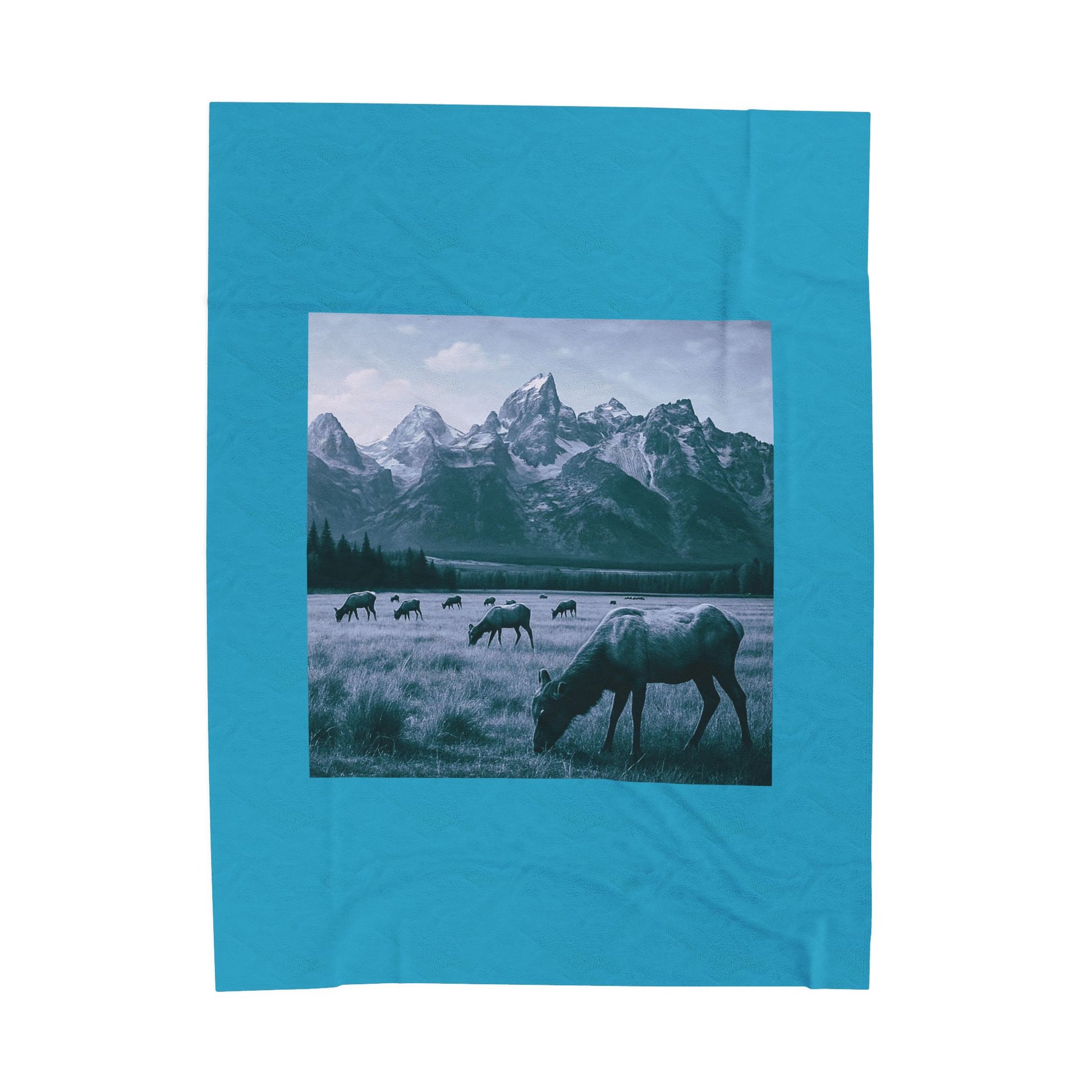 Rustic elk mountain throw blanket with wildlife herd design brings nature, lodge, and western cabin decor into your home. Featuring majestic elk grazing with snowcapped mountain peaks in the background, this cozy bed cover is perfect for rustic bedroom themes, hunting lodge retreats, or western ranch style living. The detailed elk print adds outdoor charm, making it an ideal wildlife gift for cabin owners, hunters, or nature lovers. Soft, warm, and durable, this elk blanket enhances farmhouse, rustic lodge, and western home interiors while keeping you cozy in all seasons.