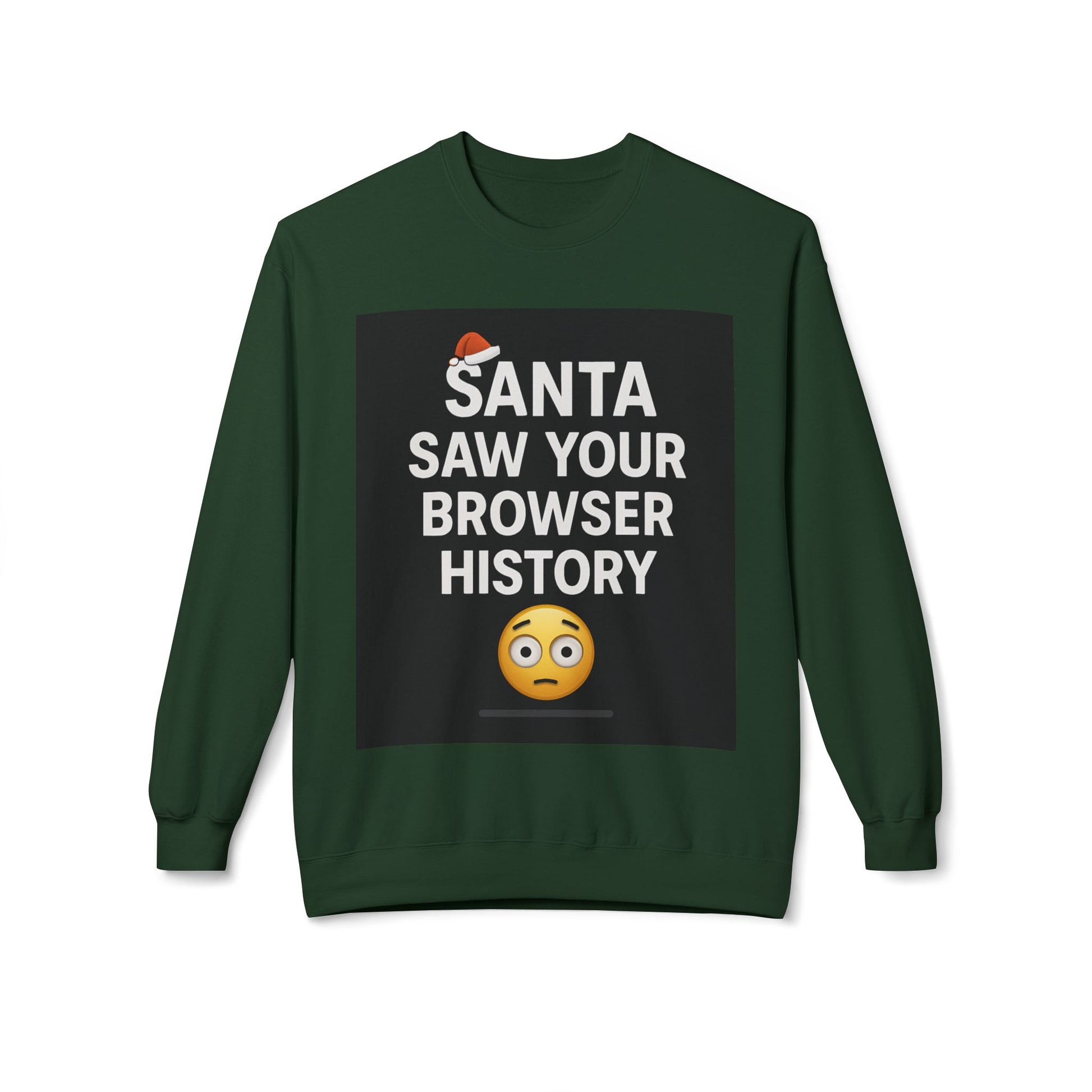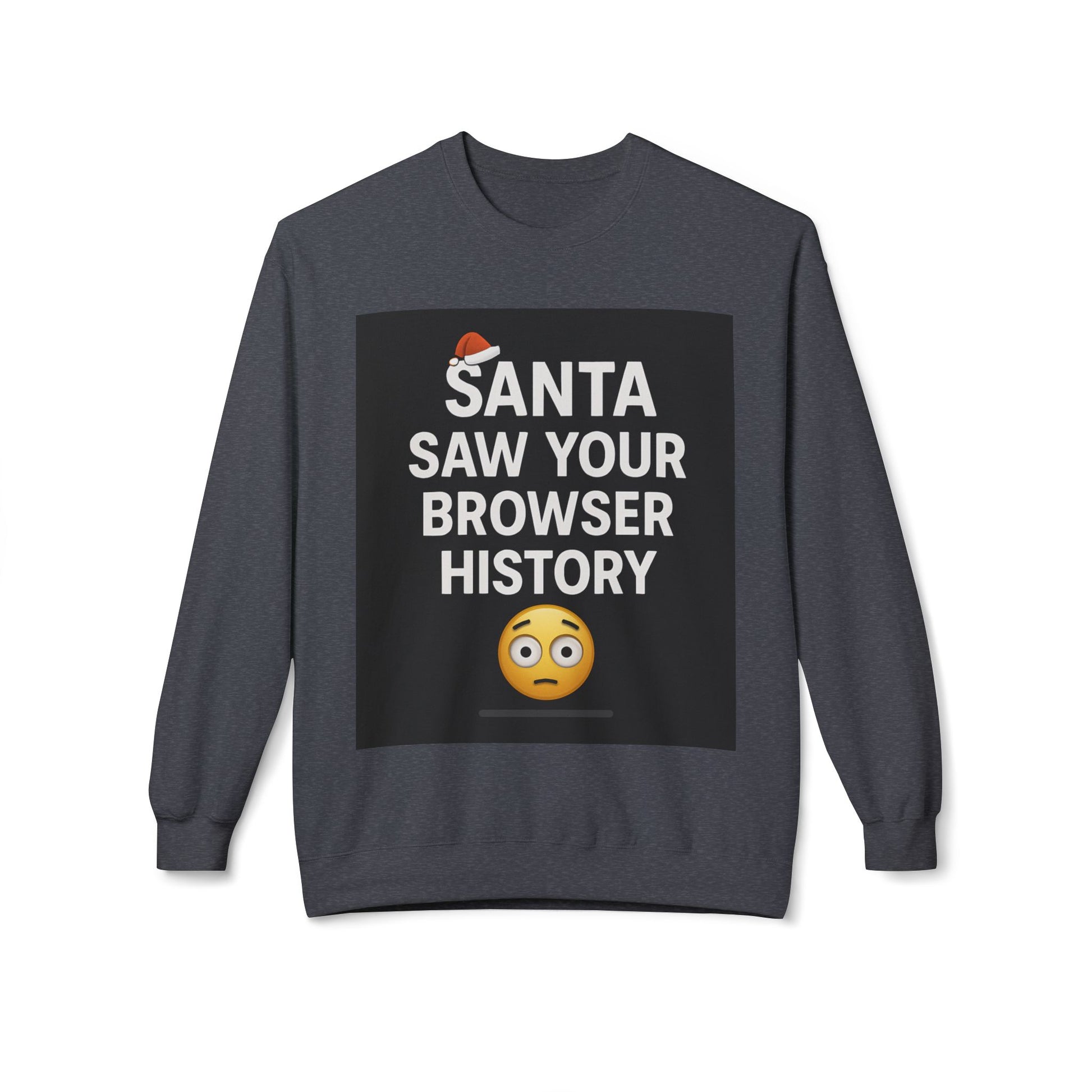 Funny Christmas sweatshirt guaranteed to make everyone laugh this holiday season! The “Santa Saw Your Browser History” sweatshirt is the ultimate gag gift for holiday parties, Secret Santa exchanges, or anyone with a great sense of humor. Featuring bold text and a shocked emoji, this cozy pullover adds the perfect mix of festive cheer and internet humor. Ideal for family gatherings, office parties, or Christmas morning photos — because Santa’s watching, even online!