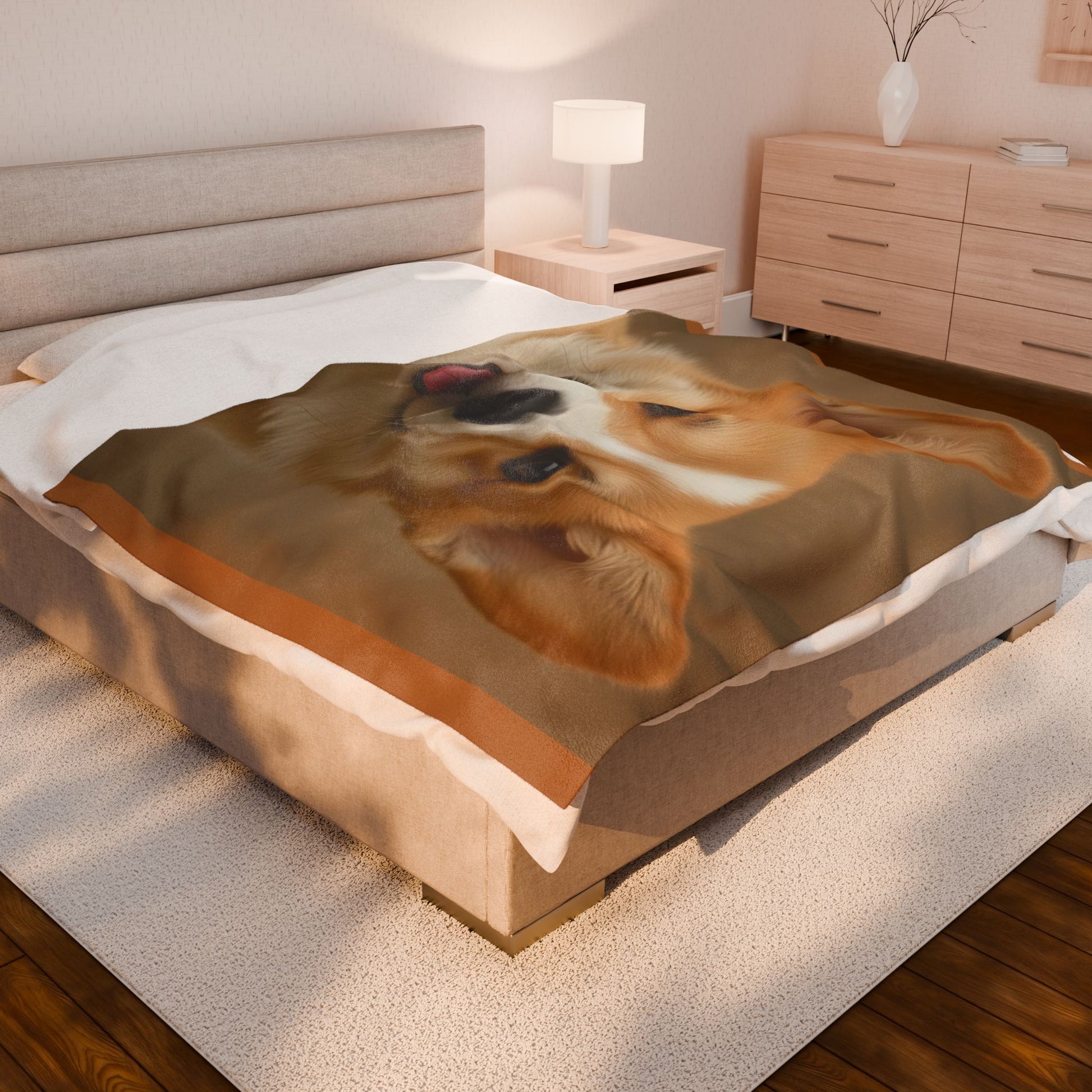 Wrap yourself in a warm, velvety hug that feels like the friendliest pup on a quiet afternoon. This plush blanket lays softly over your lap or across the couch, the printed side showing crisp, lifelike color while the reverse stays cloud-soft and cozy. It soothes after long days, adds a cheerful touch to a reading nook, and brings a little everyday comfort to movie nights or slow mornings. Lightweight enough to carry, substantial enough to stay put, it becomes the blanket you reach for when you want warmth without bulk and a sweet, personal touch in your space.