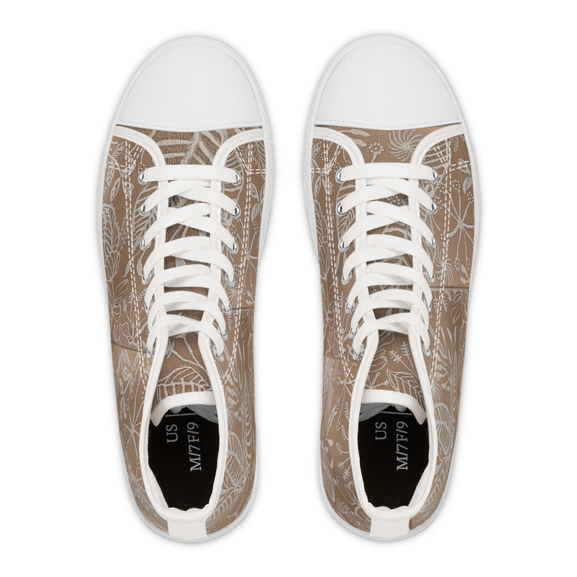 Tan Botanical Sneakers | Neutral Leaf High Top Shoes