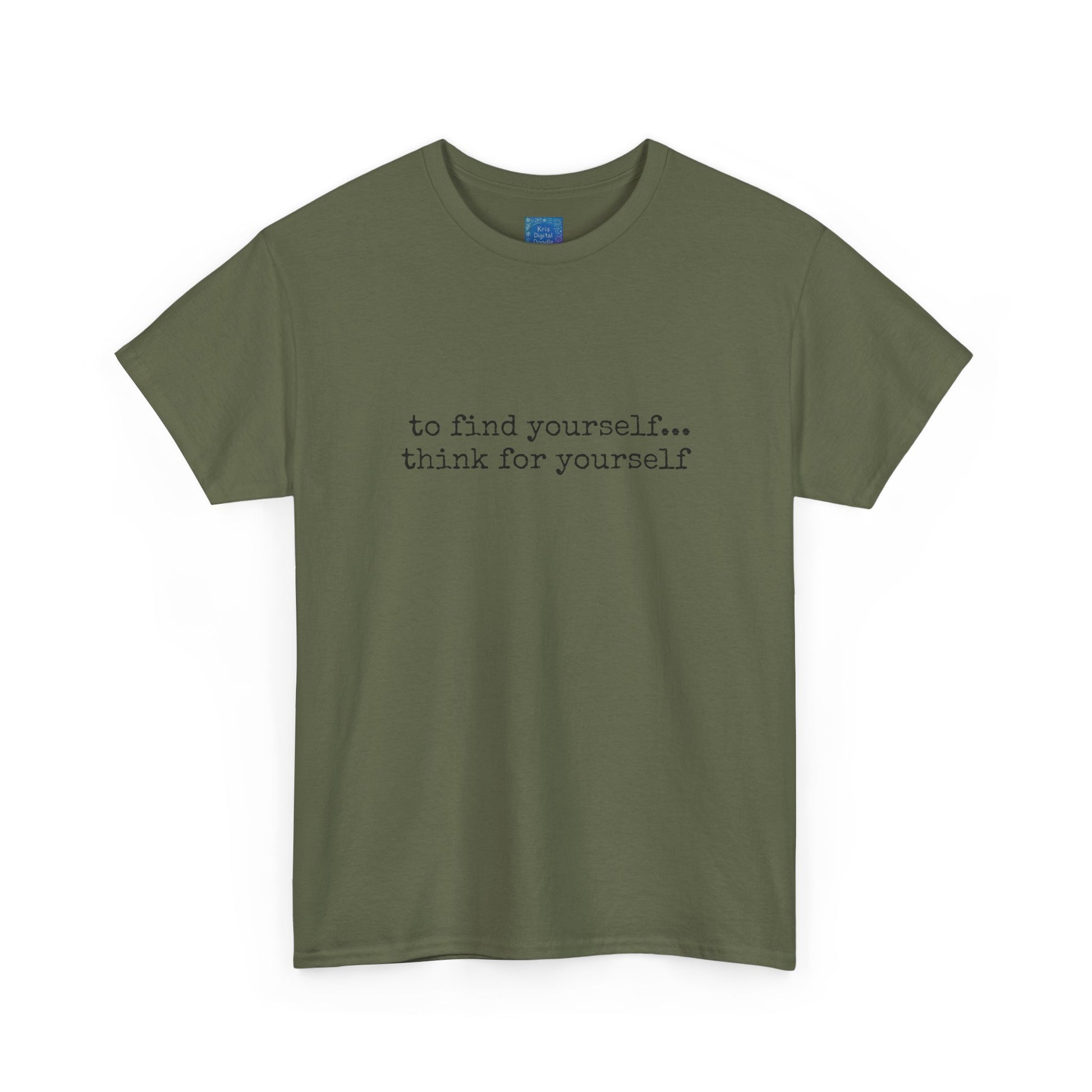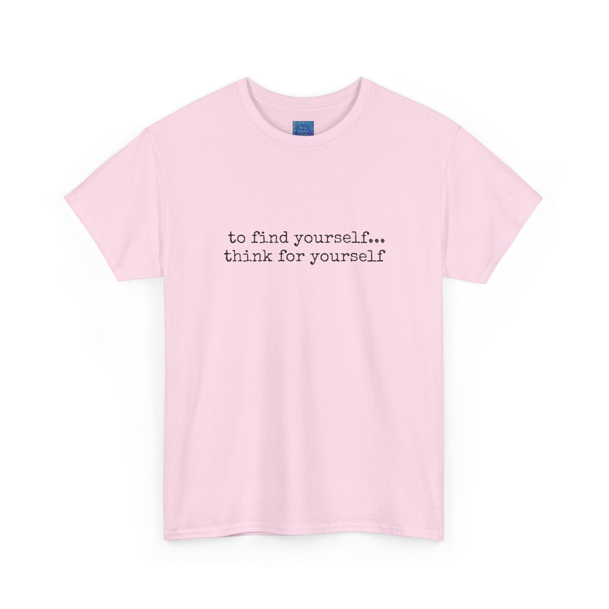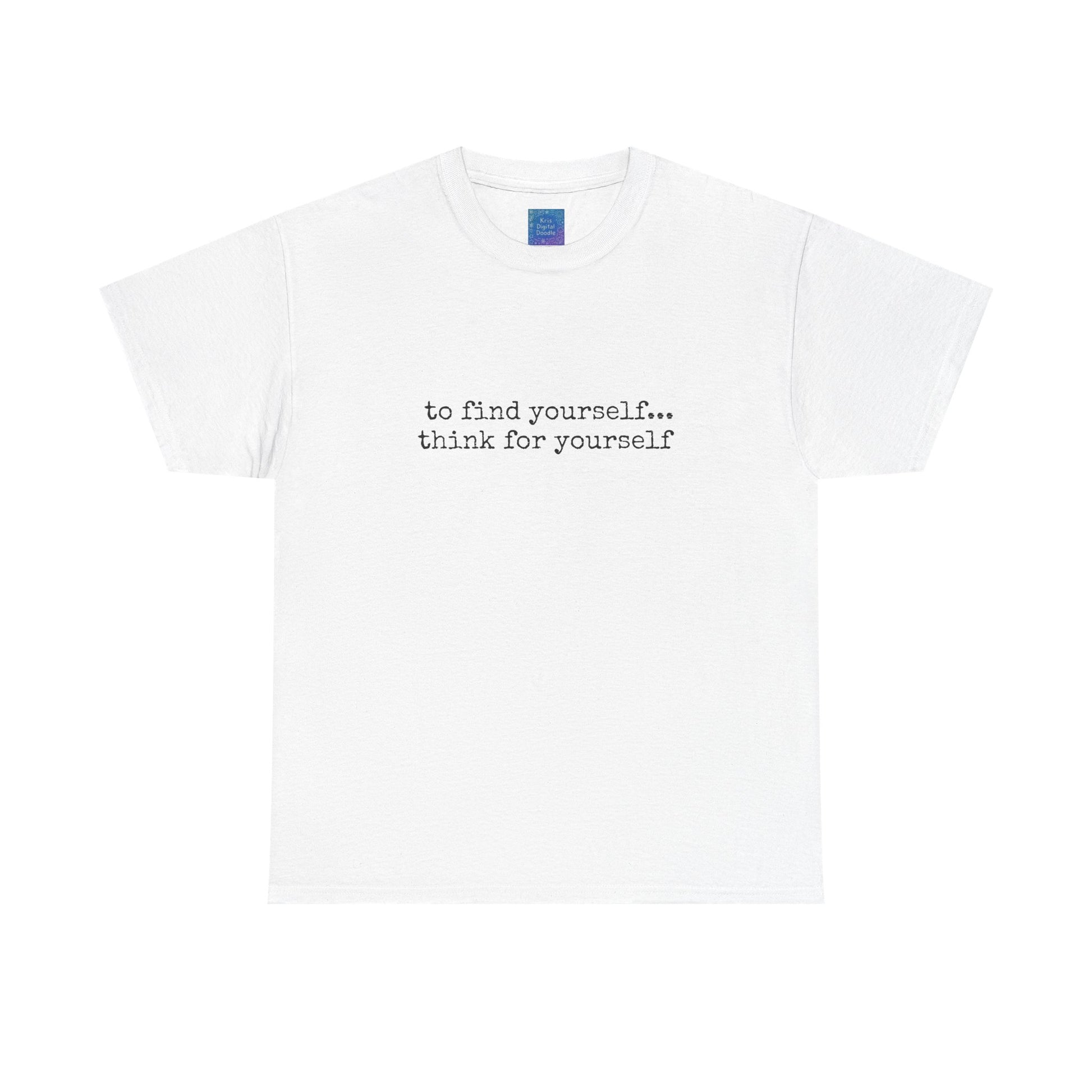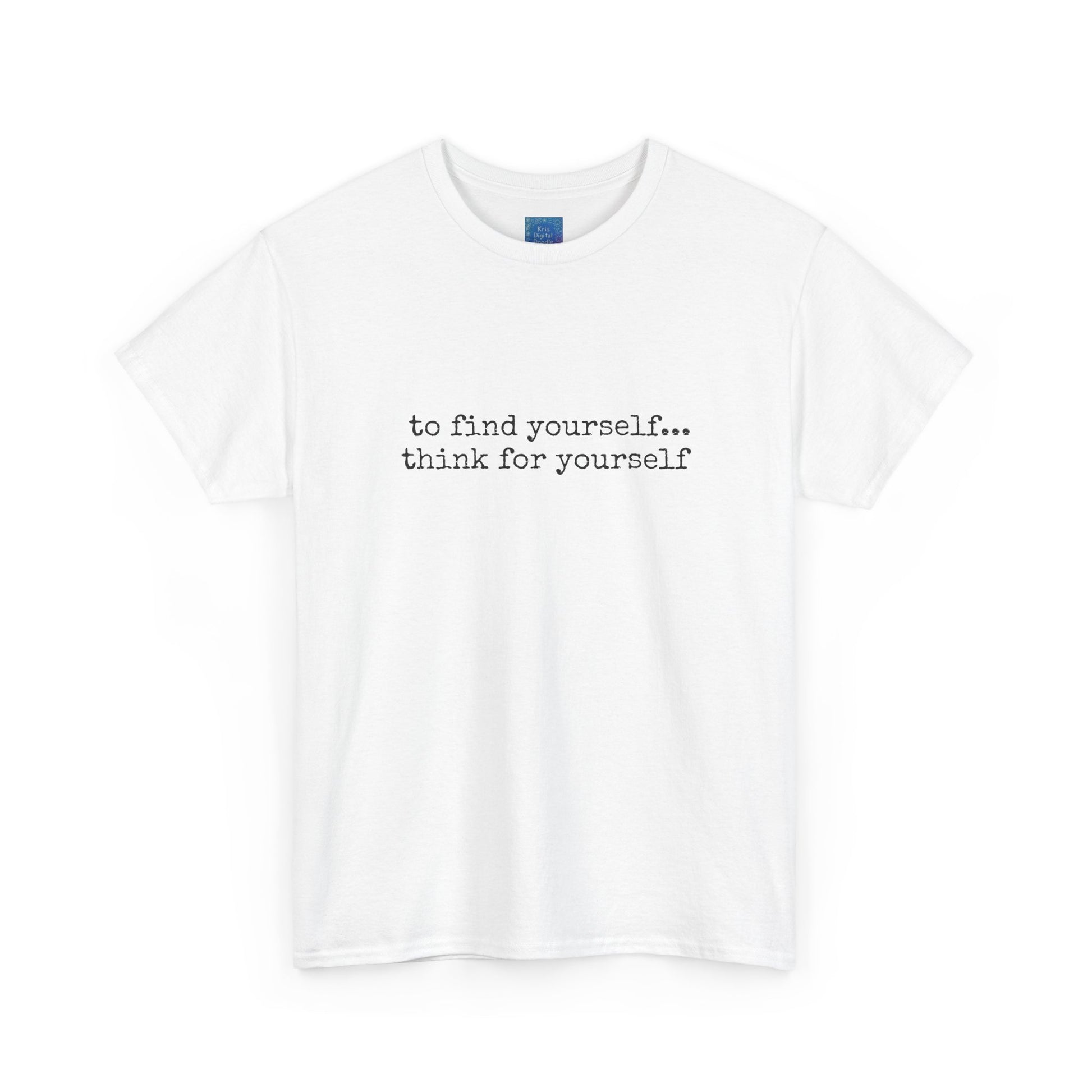 Inspirational quote t-shirt with powerful motivational text design. The first ten words emphasize confidence, motivation, and self-expression in a comfortable everyday tee. This motivational graphic shirt inspires positivity and individuality, featuring the phrase “to find yourself… think for yourself.” Perfect gift idea for thinkers, dreamers, and anyone who values self-growth and inspiration. Soft, casual, and versatile, this unisex tee is ideal for daily wear, motivational events, or gifting someone special. Stand out with a timeless design that carries meaning and style.