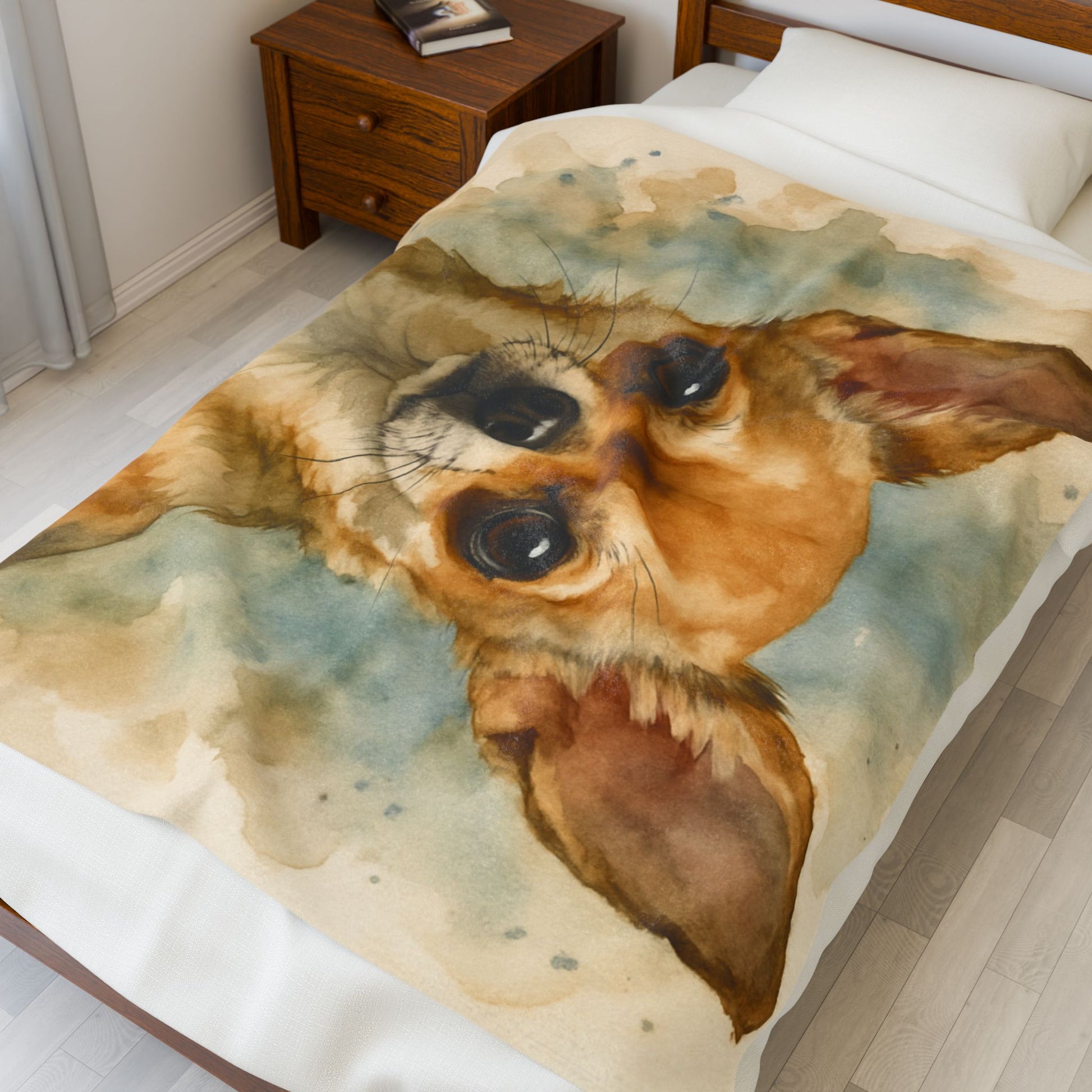 Watercolor Chihuahua Velveteen Blanket | Dog Portrait, Cozy Throw