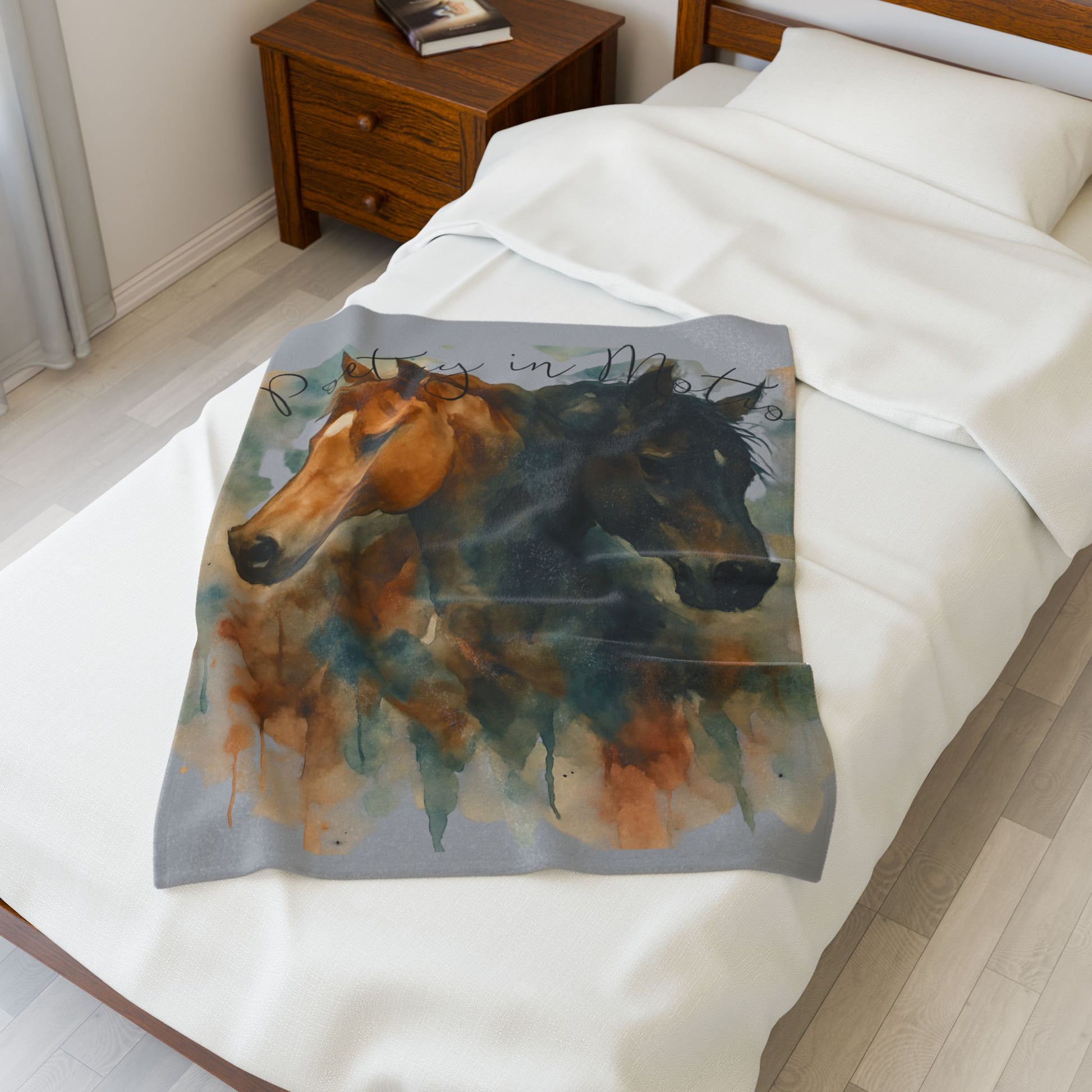 Watercolor Horse Blanket, Cozy Western Ranch Throw with Horse Lovers Art