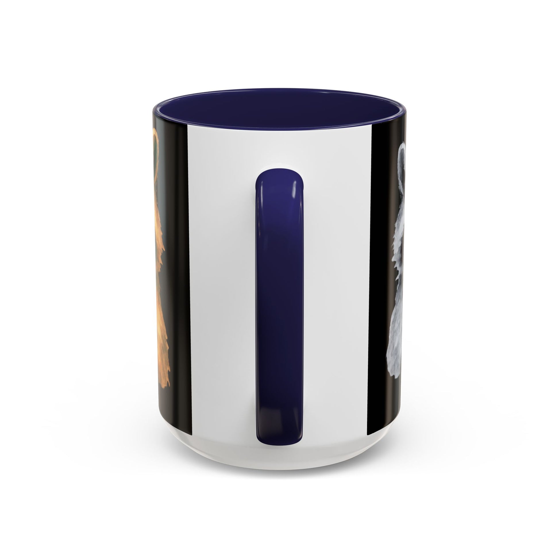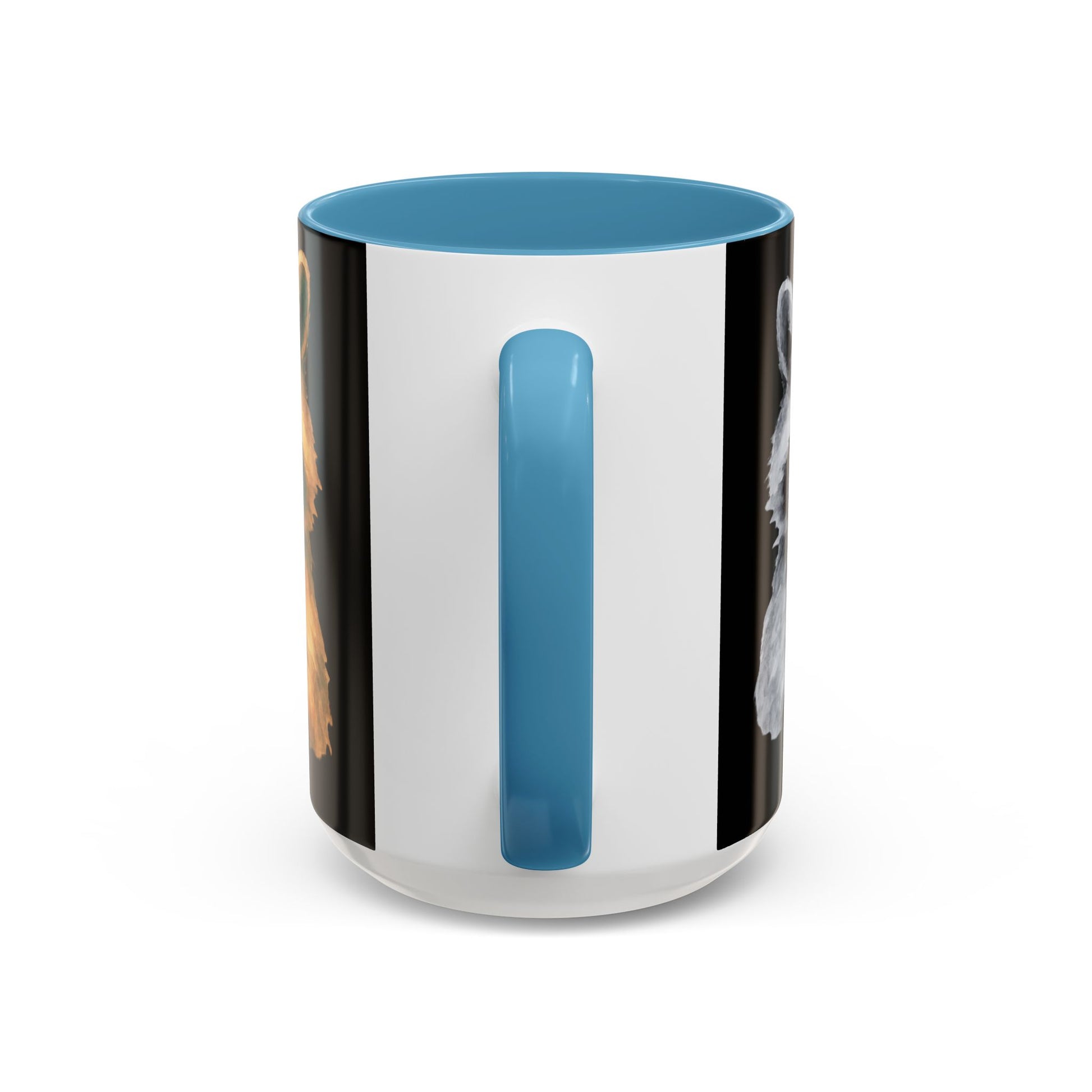 A glossy ceramic mug that brings a quiet, woodland moment to your morning. The deep black background makes the watercolor-style raccoon portraits feel intimate and slightly mischievous — like a friendly neighbor peeking in at dawn. With bright, saturated printing and a colored interior and handle, this mug balances playful character with everyday durability. It warms hands and coffee the same way a calm trailhead warms the soul: simple, steady, and a little bit wild. Product features - Microwave-safe for quick reheats - Dishwasher-safe for easy cleaning - White ceramic body with colored interior and C-shaped handle - Available in 11 oz and 15 oz sizes with glossy finish - Vibrant, lead- and BPA-free printing with eye-catching color contrast Care instructions - Clean in dishwasher or wash by hand with warm water and dish soap