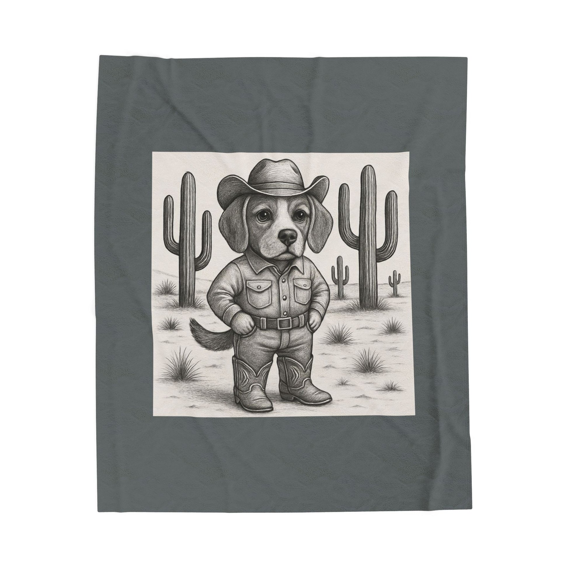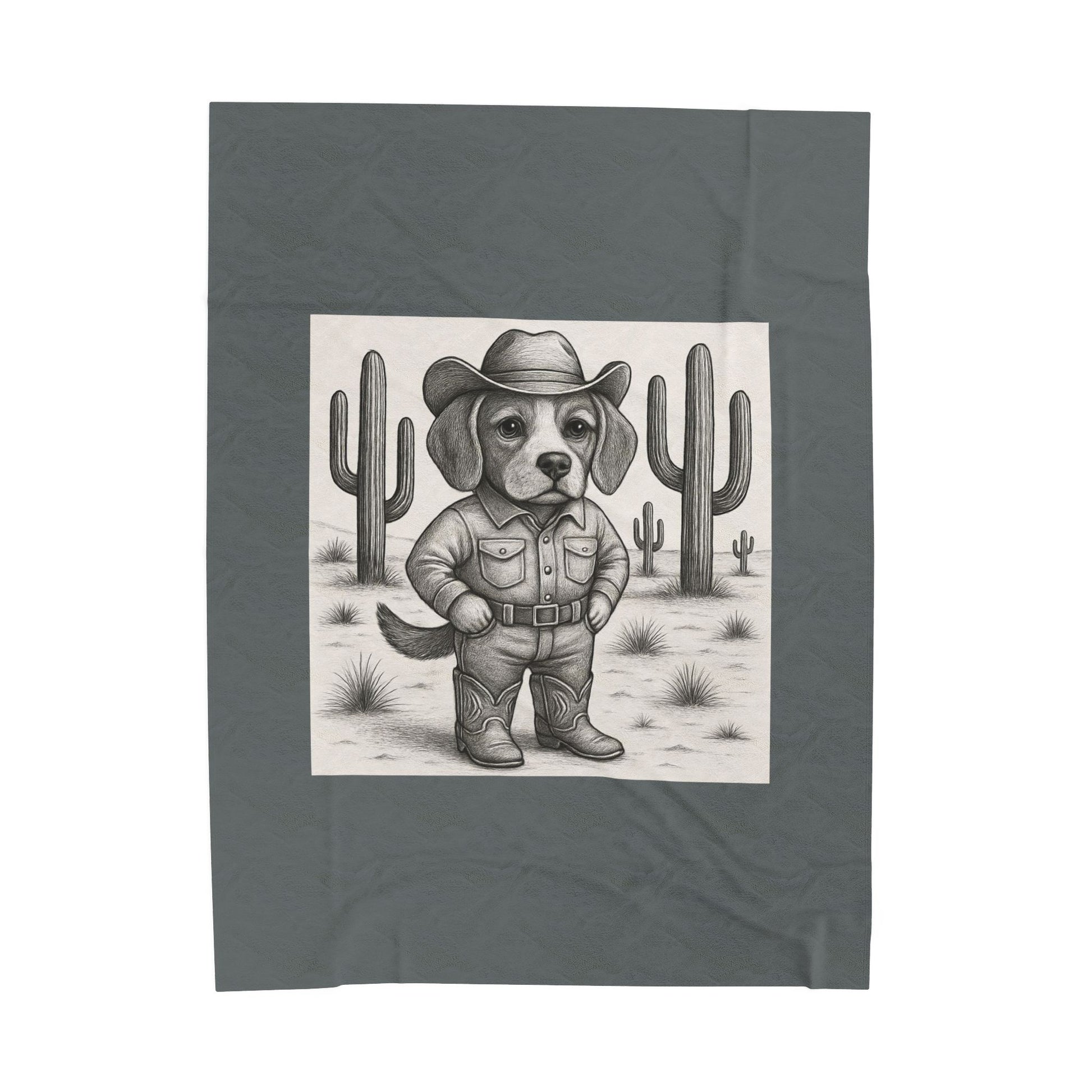 Western cowboy dog blanket with rustic country charm, cozy farmhouse style, and durable velveteen plush fabric. This soft cowboy dog print throw blanket adds unique western decor to your bedroom, living room, or cabin. Perfect as a country rustic gift, pet lover gift, or western home accent for dog owners. Made with high-quality plush for warmth and comfort. A must-have for farmhouse style, western bedding, and cozy cowboy-inspired nights.