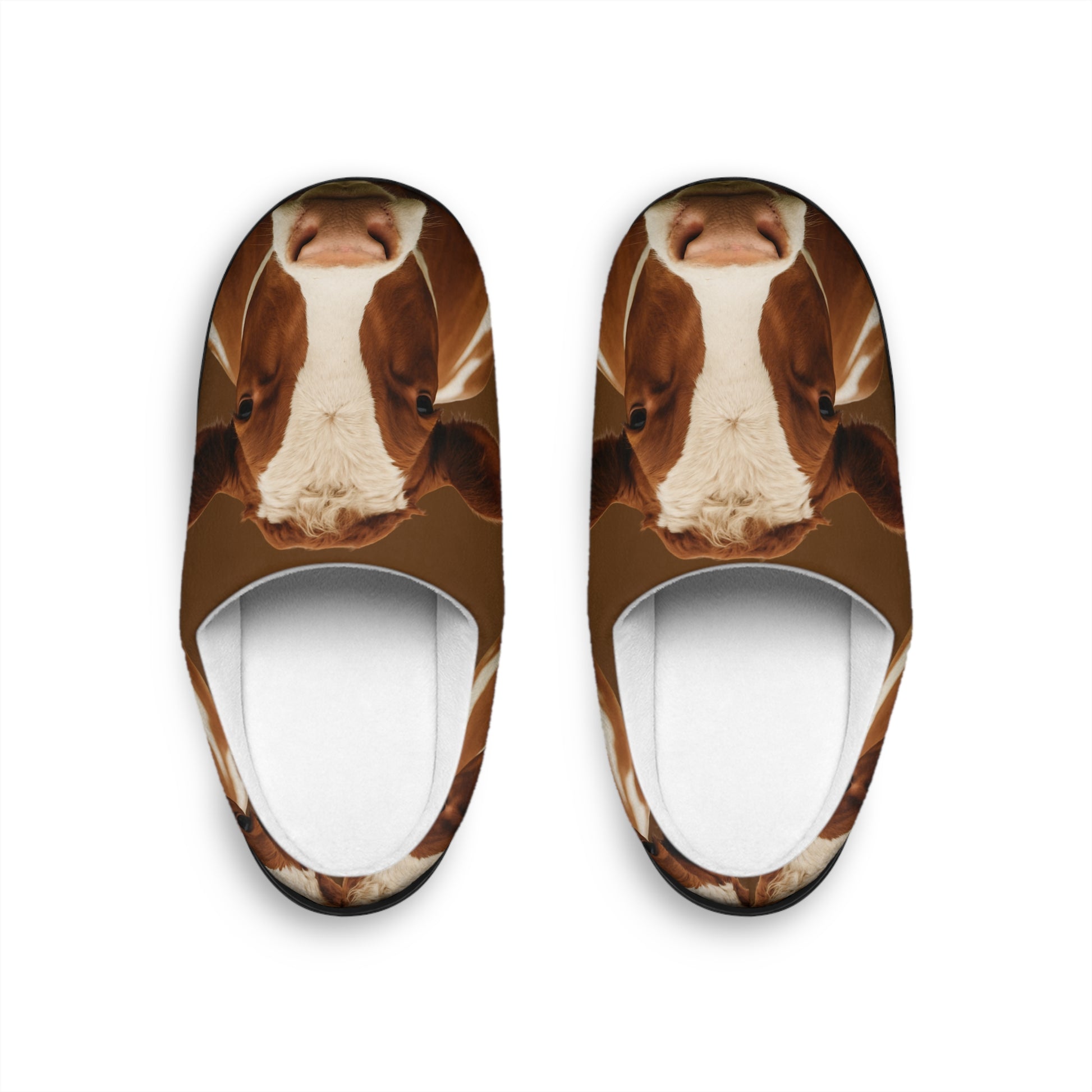 These soft indoor slippers feature a realistic brown-and-white cow illustration that brings warm farmhouse charm to your everyday comfort. Perfect for cow lovers, farm girls, rural décor fans, or anyone who enjoys cute farm animal designs.